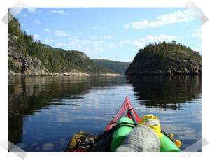 When we speak of river, it is more like the ocean, tidal with tides well over 20 feet, strong currents, but worst of all it is really a Fjord with very steep walls and very few places to pull out or get out of the wind. The wind was roaring down the Saguenay and finally we got over to the other side and more or less all of us were somewhat in the same general vicinity. The wind if anything had picked up and there was no lee. Allan stayed with me all the way over which bolstered my courage a great deal, but now the real fun began as we turned to follow the far coast. Up to that time we had been taking the sea at an angle, where you could at least see and prepare yourself for the onslaught of the waves. Now we were taking them on the stern. You could hear the bastards roaring up behind you. The first one wasnt too bad, but they came in sets, the first one bowling you over sideways and before you could get your kayak straightened the next one got you and bowled you over a little more, then the third, then Oh my God!! Is this the one??